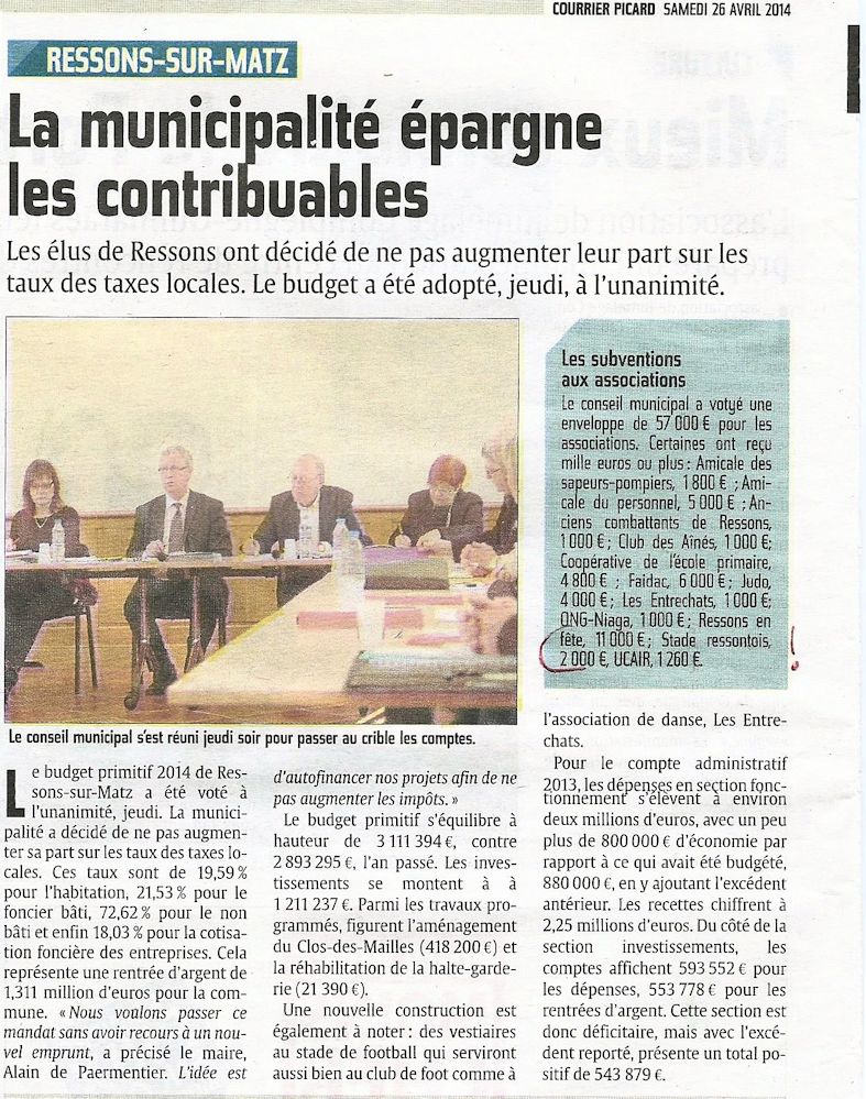 Une erreur est commise dans l'article du Courrier Picard au sujet de la subvention du Stade Ressontois,
