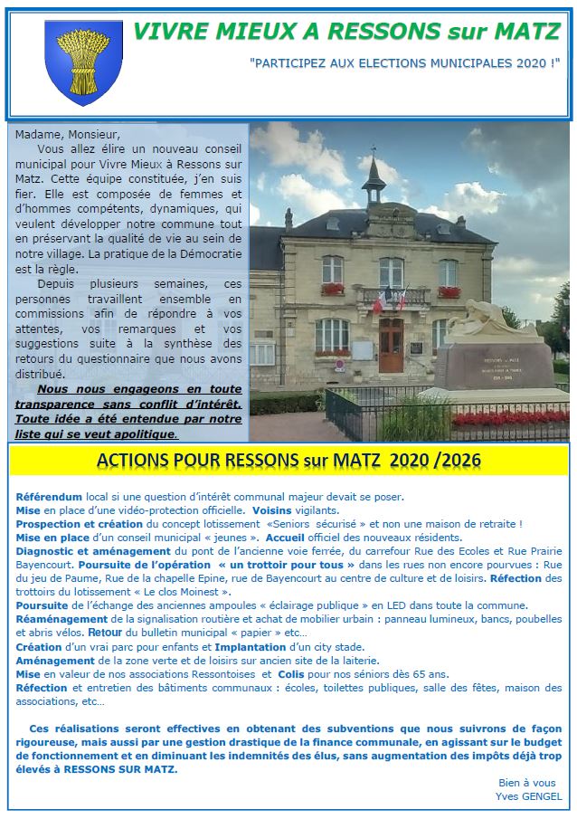 Pour 2020 cette liste devient «Vivre mieux à Ressons sur Matz»