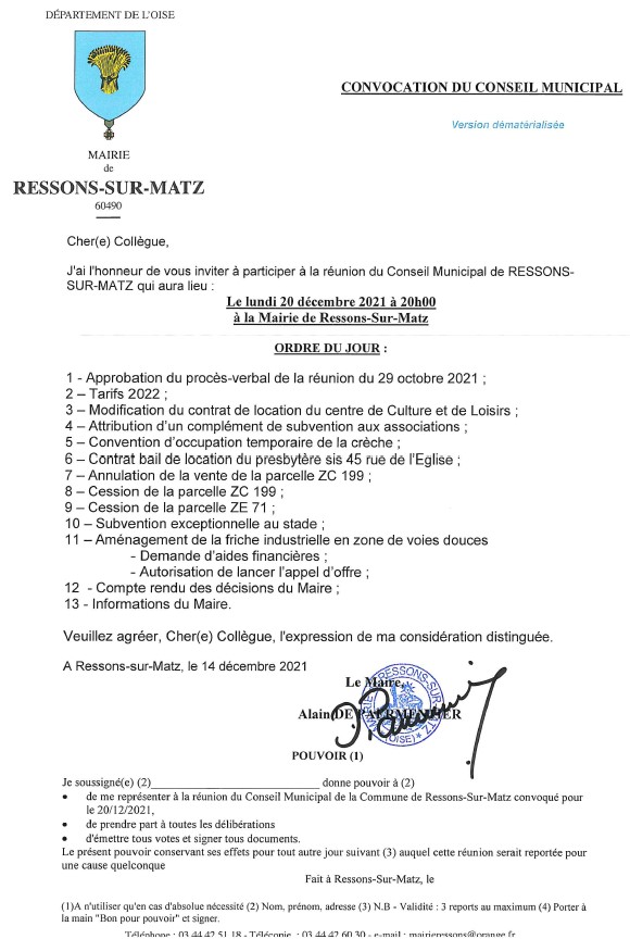 Fait à Ressons sur Matz, le 25 Novembre 2019